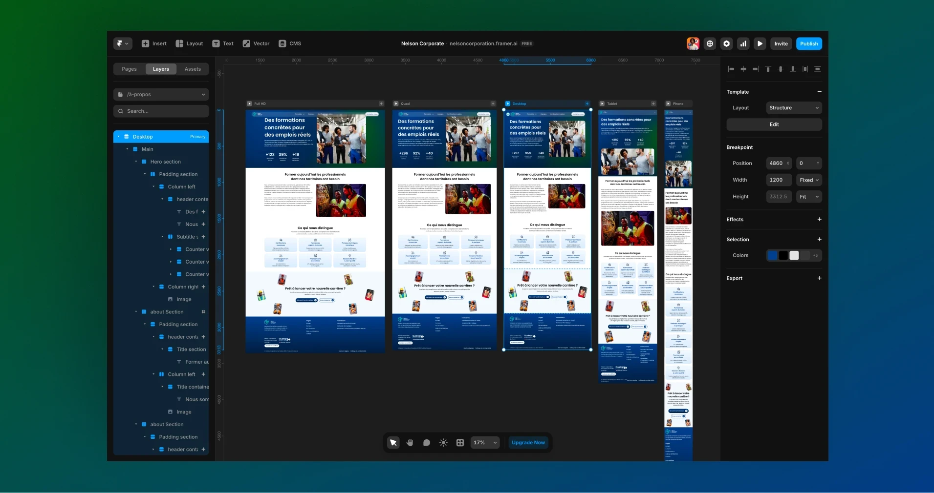 Développement du site sur Framer