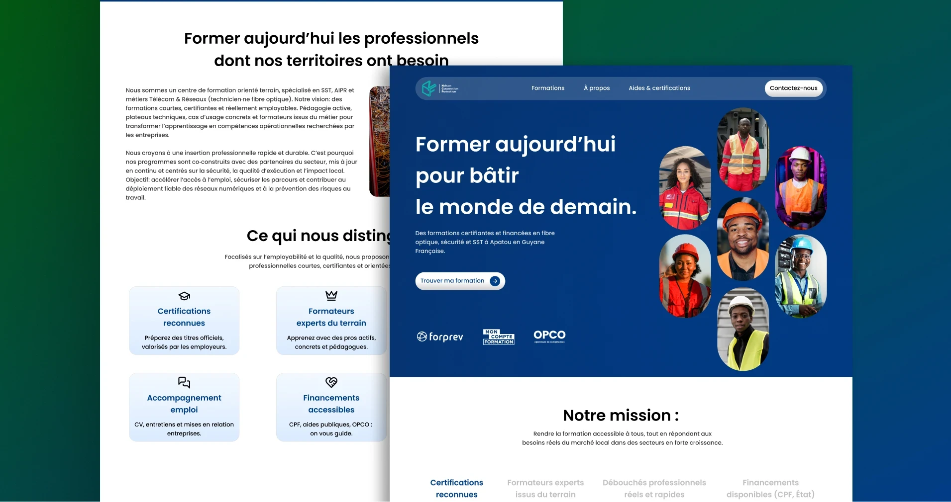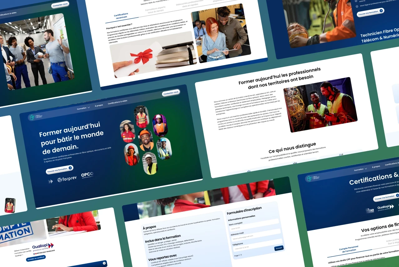 Nelson Corporation, centre de formation en cours de création en Guyane française, souhaitait disposer d’un site internet clair, structuré et professionnel, capable de présenter efficacement son offre de formations techniques tout en renforçant sa crédibilité et sa visibilité locale.